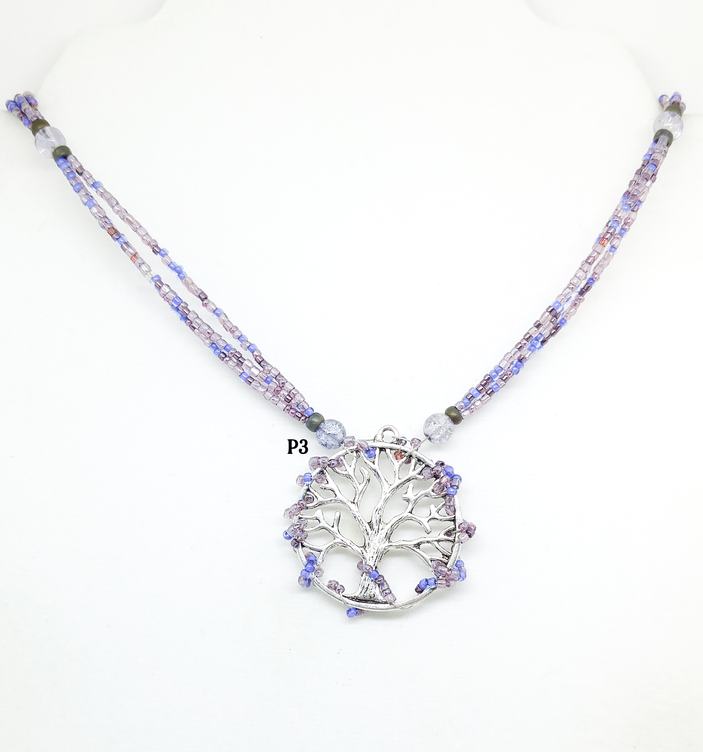 This lovely lavendar tree features beads wrapped around its border.